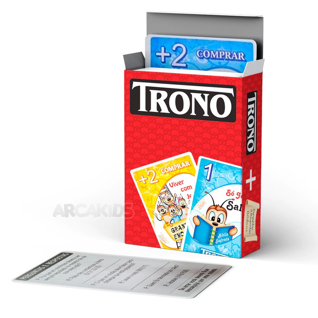 TRONO: Através de associações de cor, número, vantagens ou penalidades, o jogador vai descartando, quem eliminar primeiro todas as cartas será o vencedor.